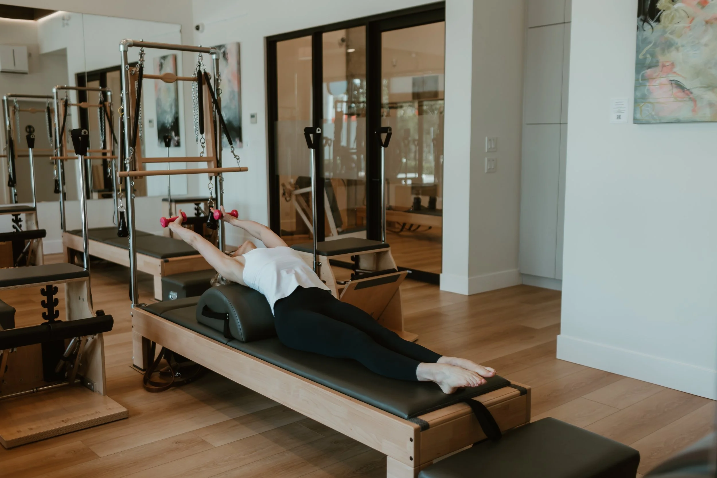 The Pilates reformer looks like a bed with springs; it has a sliding carriage, straps, and pulleys, along with an adjustable headrest and cushioned footbar. The resistance from the spring system strengthens the entire body with almost 70 classical reformer exercises ranging from introductory level to advanced level 5. All reformer exercises are performed from the powerhouse “the core”. The origins of the Pilates reformer date back New York in the 1920's.