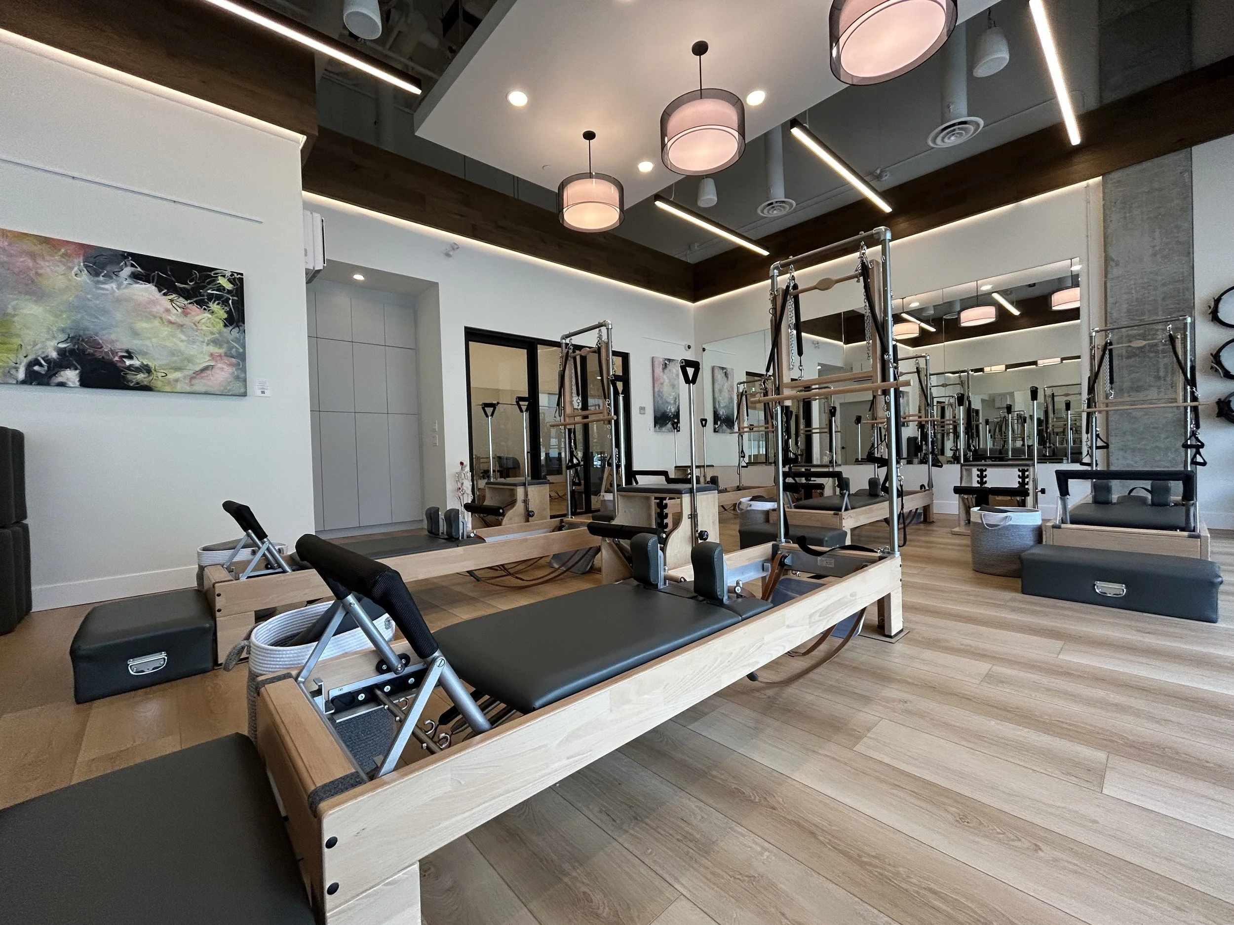 Our beautifully designed small group room has five workstations where each client has access to their own pieces of Pilates equipment.